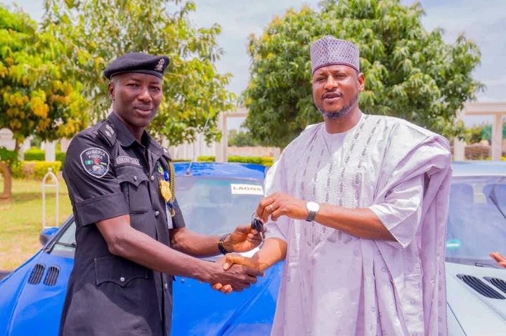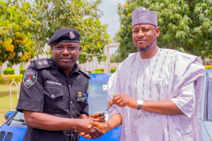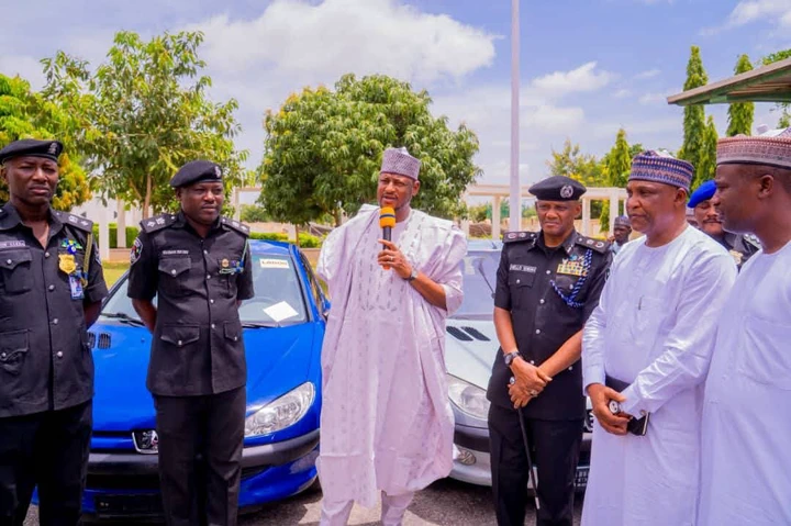 Governor Radda presented motor vehicles each to Superintendent Garba Ibrahim of Jibia Division and CSP Isiyaku Suleiman of Faskari Division, commending their courage, sacrifice, and remarkable achievements in combating insecurity in their communities.